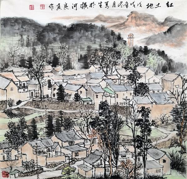 (10/11)蔡明金 古镇春色68cmX68cm