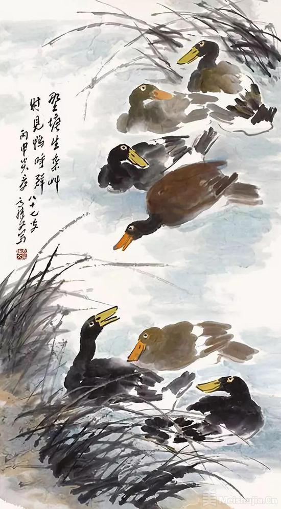空谷有佳人,踪迹渺难寻。忽见画一卷,顿觉卓不群。鹅鸭浮欲动,枇杷嗅若闻。敷色例淡雅,风格任天真。佳人画自得,佳人语绝伦。田园固可乐,何必恋市尘?是故抱幽独,哪计秋与春?佳人为谁者?老翁近九旬。