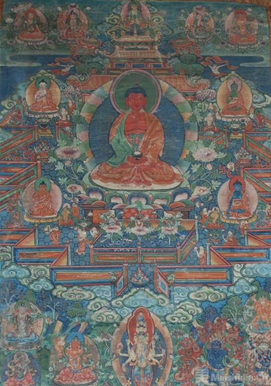 最特别的展品包括大型历史题材卷轴《凉州会盟》,这件唐卡由西北民族大学教师杨旦春及其团队创作,总长度达到30米,采用勉唐画派风格绘制,画面内容丰富,不仅再现了凉州会盟相关的历史人物,还描绘了当地的民风民俗、生产生活、服饰、建筑等。