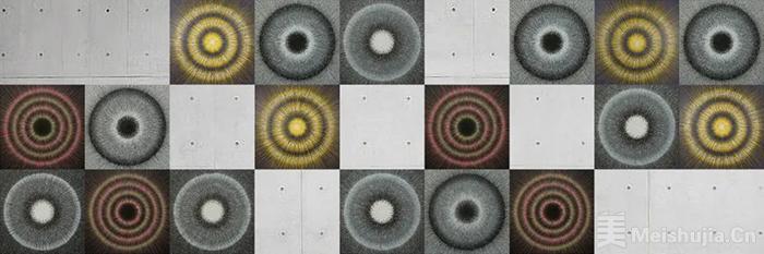 孟禄丁的艺术创作脉络是清晰可辨的,他的艺术一直是在不断跨越具象写实之后,持续纯化视觉语言的过程。他根据个人生存与现实境遇的冲突体验,并在这一交互依附的关系里,通过机械化的“元速”方式,如同磁场中的磁力线一般地盘桓于像外之象;在作品中不断显现的传统文化符号和变形“丁”字的稳定结构,叠加出错落有致的不同图式;而他利用朱砂、雄黄等材质所构成的图像“魔块”,既纠结于矛盾的角逐,又掣肘于对抗的平衡,在艺术边界的模糊与交融地带,不断超越经验与想象之外的现实。同时,这些有着抽离了内在情感后的纯粹与统一,其中压缩着他冷静、严谨的处理方式,也是他节制、精致艺术态度的象征,充分营造和建立了一个独属于自我封闭又无限延伸的视界。