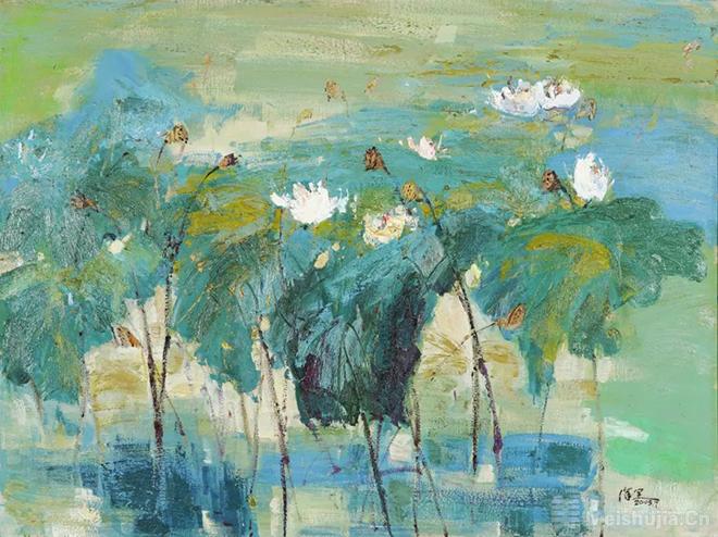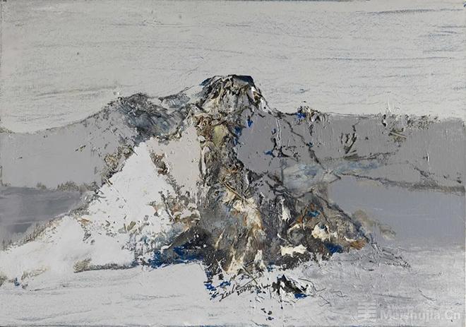 徐里早年多次踏访西藏雪域高原的一大批油画作品展示了他宽阔的艺术追求,那就是在直感和直观的基础上着力表现具有超越性意义的精神内涵,通过对形式语言的提炼,形成由“象”至“道”的指向,在描绘自然风景和塑造民族形象中抒发关于生命的咏叹,构成具有崇高感和永恒性的图式。他后来在油画和水墨两种体格中穿行,既一以贯之坚持形而上的精神诉求,又更多融入了象征意象与诗意抒情,使作品增加了意象之美、情感之美和境界之美的体味,拓展了形象语言的审美意境。