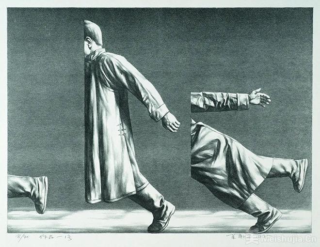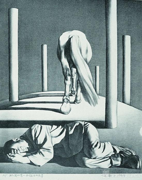 (4/5)《躺着的男人与远去的白马Sleeping Man, Departing Horse 》62×50.5cm 石版画 1989