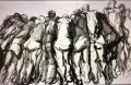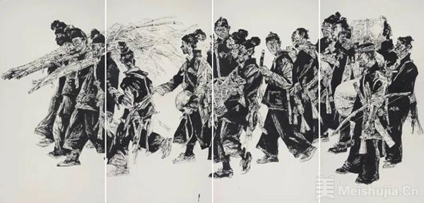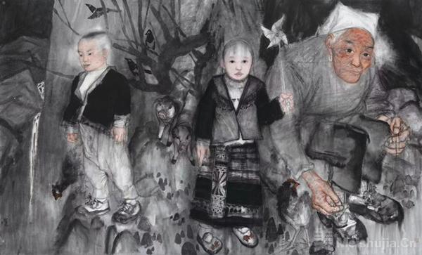 所谓艺术或艺术性,不是指主题的宏大深刻,题材的惊世骇俗,甚至感情的激烈平淡,这些都很重要,但都属于认知对象,与哲学、社会学、伦理学、心理学、历史学甚至科学相关,但无关乎美学和艺术。与美学和艺术相关的,是艺术家在驾驭其创作工具和材料时的自由程度。主题和题材只是艺术家与社会和时代联系的舟筏,以及与观众共鸣的接驳点,但真正撩拨人心而无可言说的,在感观上抚触、蹂躏甚至摇曳我们的东西,是语言运用的自由度。这种自由度,当然要同主题、题材、感情相结合。拿瓷器来比喻,既可以有紧密结合的胎釉关系(如清瓷和现代瓷),也可以有不那么紧密结合的胎釉关系(如宋瓷和元瓷),但是,釉色在胎体上的熔融、渗化、流淌所呈现出来的种种美好,无论是视觉的还是触觉的,那才是瓷器真正打动人心的东西。因此,艺术是自由,准确地说,并非指艺术选择题材和表达主题的自由,而是指驾驭材质、工具和语言的自由,艺术美取决于其所达到的自由的程度。在这个意义上,《墨局》展的七位画家,各逞其才,各适其性,以墨设局,以高度自觉的“墨玄”观,将水墨人物画的当代创作推进到不以形拘、不以物役而纯任墨戏的自由境界;尽管七位画家都背负着沉重的政治学历史学社会学伦理学心理学的压力,他们不愿意在绘画中放弃这些知识分子的认知责任,但是,他们的这种“墨局”,比较起他们的前辈,是要自由多了。他们的画,有坚硬厚实的“胎”,但也有自由流淌的“釉”。我的序言不想揭示那些导向认知领域的“胎”(同一时代的人引发主题和题材的共鸣并不困难),而更多地想将观众的注意力引向每位画家不同墨趣的墨戏,从而体悟李可染四十年前在墨天阁的墨玄悟道—-不如此,不足与言中国画。