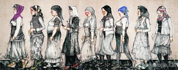 对于参加本次展事的七位画家而言,当他们进入美院学习中国画的阶段,正是李可染提出“墨玄”观之时,他们似乎天生的就没有受到主题先行论和题材决定论的影响,其实不然。因为有太多的宣传任务和政府主导的公共展事,人物画家总是无法逃脱主题与题材的强制而去尽心尽性地墨戏或戏墨,以墨玄为宗旨而开出自我的墨局。这也难怪,也无可奈何。但是,今天观众朋友们看到的七位画家—-袁武、殷会利、曹宝泉、王颖生、王晓辉、刘佳、秦嗣德—-可以说是这一罗网的“透网鳞”。他们的水墨人物画创作当然有主题,也有自己阶段性的题材,但是,他们清楚地认识到自己的水墨画家身份,很早就为自己开一“墨局”,或浓或淡、或干或湿、或清或浑地在笔下的人物形象上恣意戏墨,把一个中国画家对于墨性的敏感和对于墨玄的颖悟,以他们熟稔的人物形象为载体,淋漓酣畅地泼洒到宣纸上,解衣磅礴,气交冲漠。袁武之凝如铸铁,殷会利之干裂秋风,曹宝泉之墨渖淋漓,王颖生之温润如玉,王晓辉之浑厚华滋,刘佳之色墨间离,秦嗣德之积墨如搨,七个画家,七套笔墨,七种墨趣。一种材质,绽放出七样墨花,展现出七般姿媚,表达出七种情性。