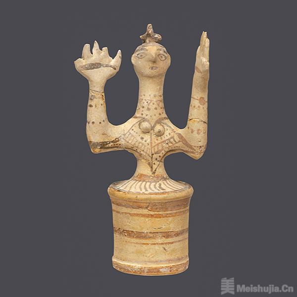 展览以新石器时代为起点,随后介绍基克拉泽斯、米诺斯和迈锡尼三个青铜时代文明。基克拉泽斯文明的代表性文物是人物小雕像,其形态别具一格;米诺斯文明也称克里特文明,以宏伟的宫殿、丰富的贸易活动与独特的文字系统闻名;迈锡尼文明则以其广泛的影响力,将希腊打造成连接东西方的桥梁,迈锡尼卫城墓圈出土的「阿伽门农金面具」是这一文明极具代表性的文物。
