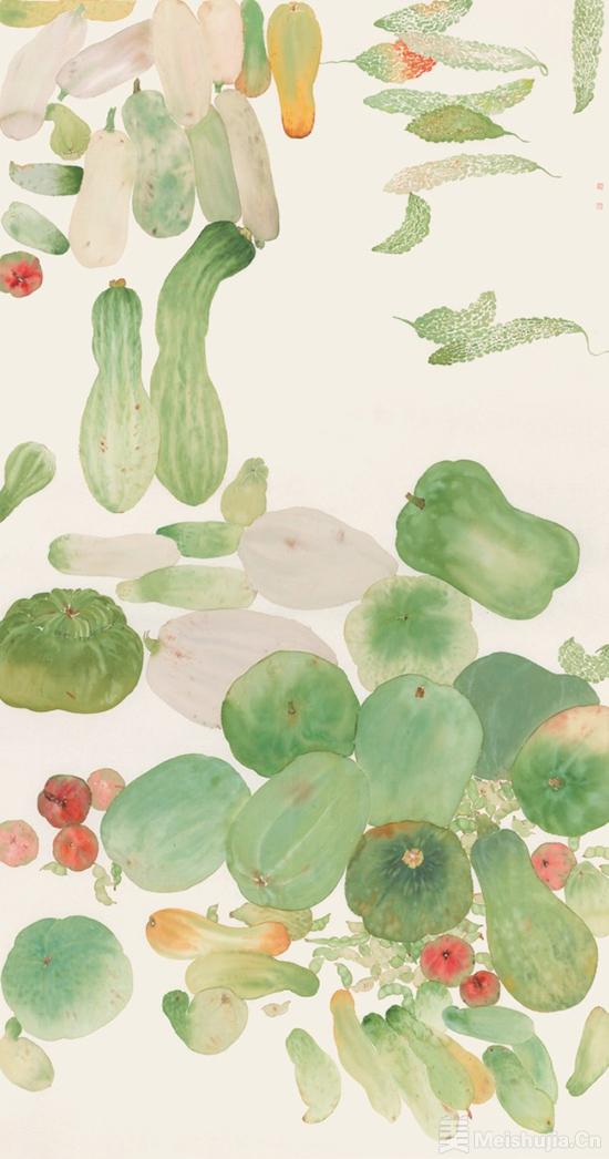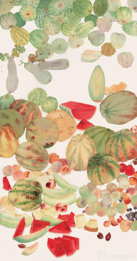 2024年三月份从聊城莘县画蔬菜开始,到六月份的两次新疆之行,七月份的河南辉县早市,十月份的柳江农贸市场,十二月份的贵州黔灵巷,那形形色色味道甜美的瓜果,那带着露水和农民汗水的新鲜菜蔬,成为我绘画的重要素材。