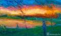 谢东明的艺术始终扎根于对生命本真的叩问。他喜欢用大笔、刮刀饱蘸颜料作画,笔触狂放有力,让土地的记忆、阳光的震颤与人类的欢愉在画布上共生。他深入独龙江的深谷、黄河源的雪野、藏地的牧场,将画笔浸入未被现代性侵染的生命现场。那些被定格的瞬间——山民疾行的背影、藏族女孩的微笑、林间跳跃的少年——无不饱含对质朴存在方式的深切羡慕。正如他所言:“我画的是阳光下最本真的人,他们的幸福在于与自然的天性相依相存。”《欢乐家园》中沸腾的喜悦,正是这种信仰的巅峰呈现:当人们在大自然中欢乐的舞蹈,艺术便成为对生命原力的永恒礼赞。