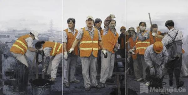 其作品最动人心魄的,是对平凡生命的平等凝视与尊严赋形。他的画笔既聚焦城市化进程里汗湿工装的建设者,也停驻边地高原上被风沙雕琢的面庞:风霜刻入的皱纹被视作生命的年轮,尘土覆盖的手掌被赋予劳作的荣光,就连休憩时遥望远方的沉默,都被定格为一种庄重的生命仪式。正是这份不带滤镜的真诚,让每一个平凡身影都在画布上获得了超越时间的重量。