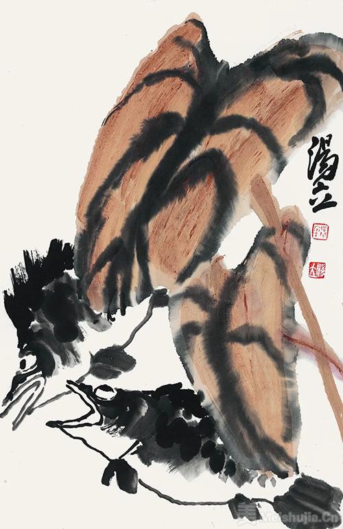 我的绘画自学起步于任伯年。我的写意画深受吴昌硕“平生得力之处在于能以学书之法作画法”的以书入画和“苦铁画气不画形”的影响。