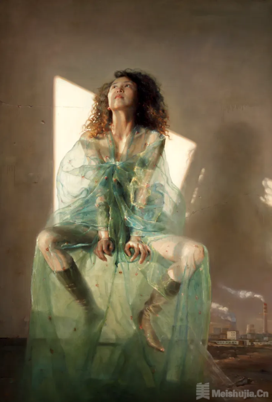 在早些时候,他是丝绸与光影的诗人。那些精微绝伦的“丝绸系列”,宛如一曲曲视觉的咏叹调。画中的女性与丝绸低语,光影在缎面上流淌——丝绸在他笔下,升华为中华物质文明的温润结晶;女性形象,成为“上善若水”哲学的诗意化身;而斑驳的光影,则是生命丰繁层次的隐喻。