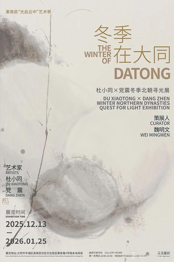 艺术家杜小同、党震携近年力作,冬季踏雪西行,驻足平城大同,以当代之笔墨,叩访千年灵光。这是一次当代艺术家与北朝历史的相遇,也是一场关于时间与造化的对话即将发生。