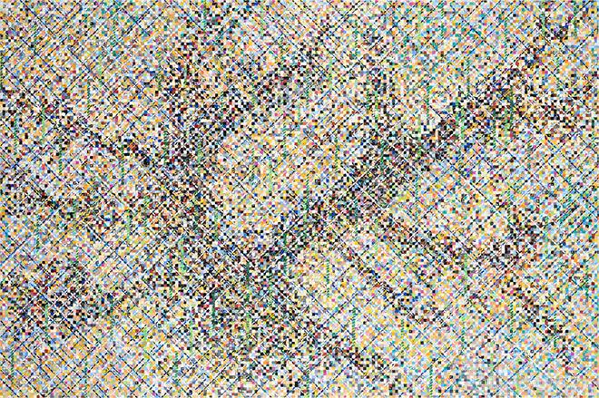 “山川不白”并非旨在以回顾形式总结庄普的艺术成就,而是着重呈现其创作方法的持续演进。他的“印格”既是绘画,也是行为——以一厘米见方的印章取代画笔,通过重复、缓慢而近乎劳动般的动作,在时间的进程中逐步生成画面。庄普曾如此描述这一创作过程:“用一个很小的氛围,一种小图章的氛围,小小东西成为一个能量,累积大了之后,繁殖成为一个世界或宇宙的概念。”他的抽象形式蕴含深刻的叙事性,此次展览将呈现艺术家自1980、90年代的前卫实践,至21世纪逐渐超越纯粹观念与极简标签、最终实现个人方法、体系与风格的整体脉络。