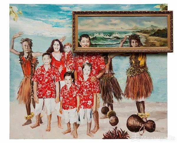 李青在首尔举办的个人展览中,聚焦于时尚模特儿、售货员、中产阶级度假者等“美丽”形象的呈现,这些形象以“仪式化”的姿势摆拍,用于“社交媒体”。这些形象与锦缎的图像叠加——锦缎是中国“计划经济”时代旅游外交的纪念品,再搭配一些当今的城市地标,例如首尔的乐天世界塔……事实上,在他的画作中,这些图像被转化为空洞的符号,牺牲了其存在的本质,成为他者欲望的镜像幻象。它们是献给世界走向未知而危险的未来“成年礼”的祭品。这场“成年礼”正值中国农历新年之际,中国人和韩国人都怀着对新年祝福的期盼庆祝这个节日。为了获得祝福,我们究竟需要付出多少牺牲?