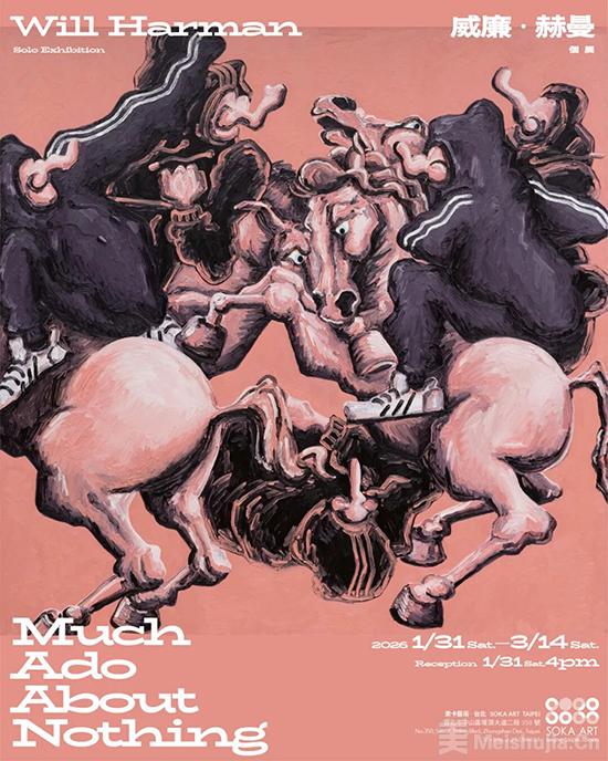 索卡艺术将于2026年1月31日至3月14日,推出英国艺术家Will Harman全新个展 Much Ado About Nothing。展名取自莎士比亚的同名喜剧。在那出作品中,流言、误解与过度解读层层交织,一句话被听成另一种意思,一个眼神被视为证据,原本称不上什么的大事,却在众人的关注与转述之下被越演越真。喜剧之所以成立,并非因为情节多么荒唐,而是因为这样的情况并不陌生;人们在群体之中,经常被气氛推著前进,跟著相信、跟着表态,也跟着演完一场早已有人写好的戏。