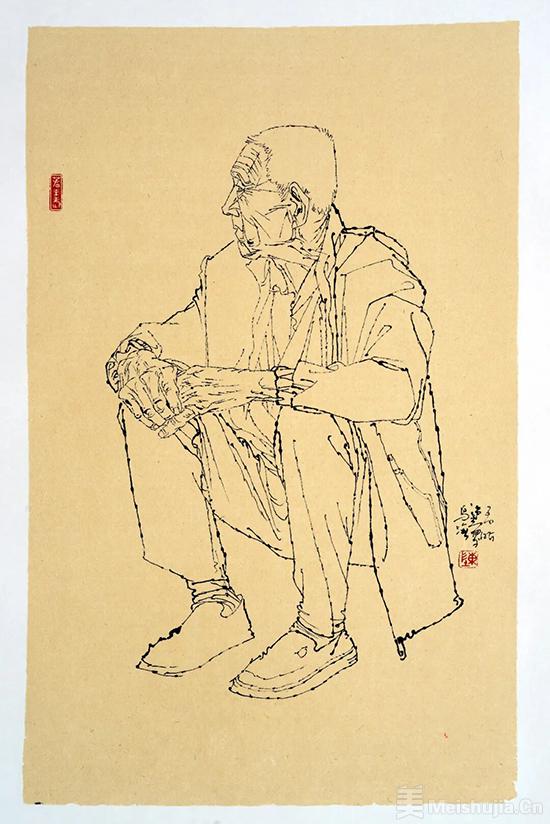 线描画是中国画的重要门类。陈孟昕的线描人物作品以严谨的造型和精妙的线条著称。此次线描写生研究展,主要呈现陈孟昕的写生作品,线条流畅自然、轻重缓急把握有度,人物神态逼真、衣饰疏密和谐,使得画面更添几分写生的现场氛围,极具视觉张力。