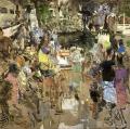 实际上,张淳大宝的作品呈现的“题材”是多方面的,他能够以主题性的创作展示与现实关联密切的思考,也能在日常生活的微观中捕捉生动的情景;他画了大量的人物肖像和群像,更在走进风景的旅程中进行畅快的描绘。但无论何种题材,在他的表达中都充满即时的感兴和临场的感性,画面总是洋溢着大千世界生命的动感,尤其以丰富的形象细节构筑起颇有迷幻感的空间。在他的作品面前,可以看到绘画的“当代”属性,这种属性包含了两个维度:一个是他自觉坚持深入生活,感受当代中国社会发展的火热场景,感受时代变迁激发起来的社会活力,于是,在他的作品中,既有来自现实的形象依据,更在整体意境上对应当代社会发展的蓬勃生机和生活的风采,体现出饱满的时代精神;一个是他长期坚持探索语言,既以“个性化”作为总体目标,更以将眼前物象的“陌生化”处理为具体课题,在学理致思和语言建构的统一性上体现出当代的自觉。