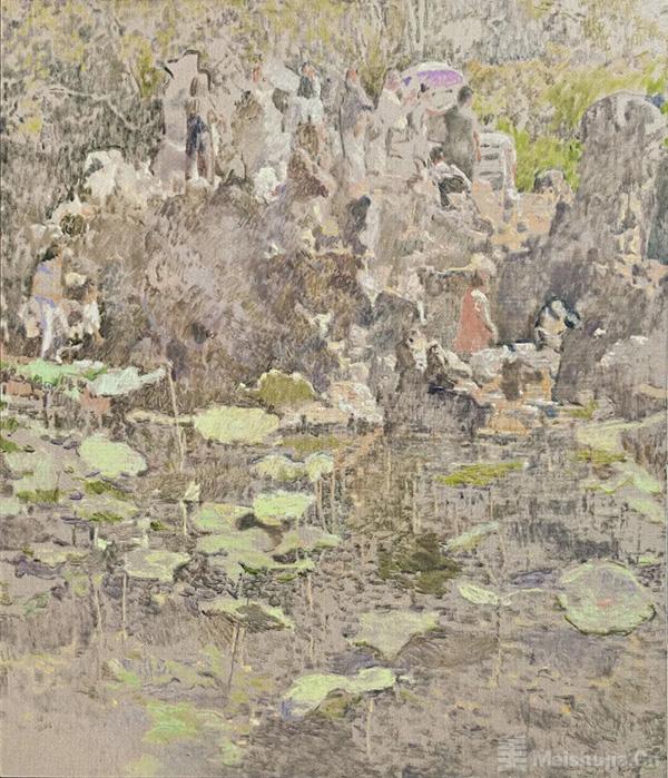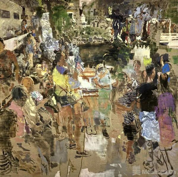 面对纷繁的当代世界,张淳大宝能够秉持澄怀的状态,以纯粹的心理对待复杂的物象,将所见之物纳入视觉之思。在某种程度上,他的视觉燃点是比较低的,在富有动感的物象面前,他涌发的表现激情披图可见,直接性的痕迹十分清晰,也正是这种以感性驱使的动机,使他在不同作品中都能构建出独特的意象,或者说在他的经验中,意象生成的方式随机而发,在人物作品中表现为影像绰约,人与环境交融辉映;在大量的风景题材中,更是以“散点透视”自由经营画面,直取风景的意境表达。他典型的语言特征是表现性、写意性的色彩与用笔,他有优秀的色彩秉赋,以色彩造型是他的长项。通过书写性的用笔,他将色彩语言发挥得淋漓尽致,以笔线和团块构筑成画面上闪烁的光斑,使画面拥有起伏呼吸,形成光与彩的交响。在一些大尺幅作品中,他整体把控画面的能力十分明显,将线与面、笔意与造型、色彩与肌理交织成各种意象,为中国油画吸收融合传统绘画的写意精神作出了可贵的探索。