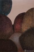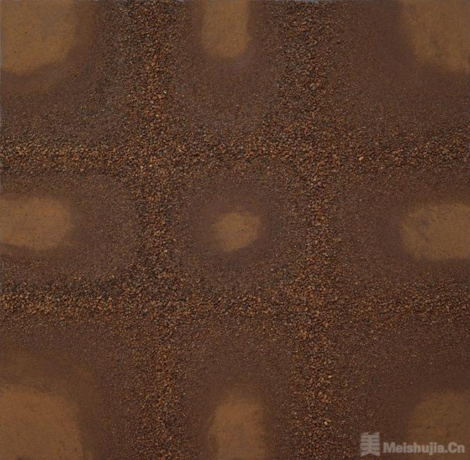 这批作品所呈现的,是材料的“物性”在重新获得尊严之后能够抵达的意义深度。那些赭色的颗粒,疏密之间自有节律,浓淡之中潜藏温度,构成的肌理从不趋向装饰,而始终指向一种更为根本的自然物属性——生长、消散、沉积、残留。观看这些作品,你可能首先感知到的是一种触觉性的亲近,那是植物与土地的气息,是时间作用于有机物质后留下的痕迹——这种感知先于任何观念解读而存在。