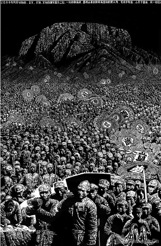 代大权 贺秦岭 重于泰山 450×310cm 黑白木刻 2012年