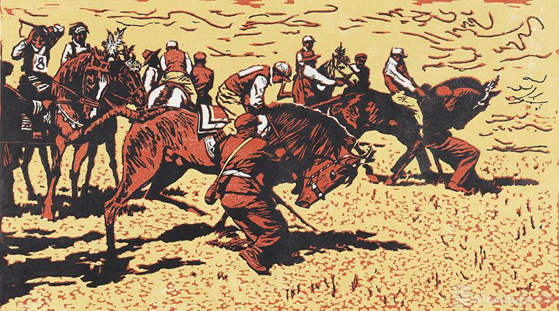 金色的赛马场(版画) 31×54.8厘米 1981年 徐匡 中国美术馆藏