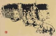 而《会师大庆》则以大尺幅充分展现了那个大建设年代的火热激情。“1975年,大庆油田办展览需要美工,人家来中央美院交涉请派画家前往支援,院里决定调八位教师前往。由侯一民带队,梁树年和张立简、黄均、李桦、梁栋、杨先让、罗尔纯参加。侯一民创作《铁人学毛选》,李桦、梁栋合作一幅《运输队》,《会师大庆》分给我了。那也是我所求的,那是人拉肩扛、千军万马的全国石油战线上的人马集合的大场面。任务紧,半月之内要完成,最终只能选一张五合板,作为木刻不能再大了。我充满了感情,废寝忘食,日夜赶制,初稿审查我的首先被肯定。趴在板子上画,坐在板子上刻,我还要水印套色,记得我最后一刀完工时,心里尚不过瘾。”杨先让说。