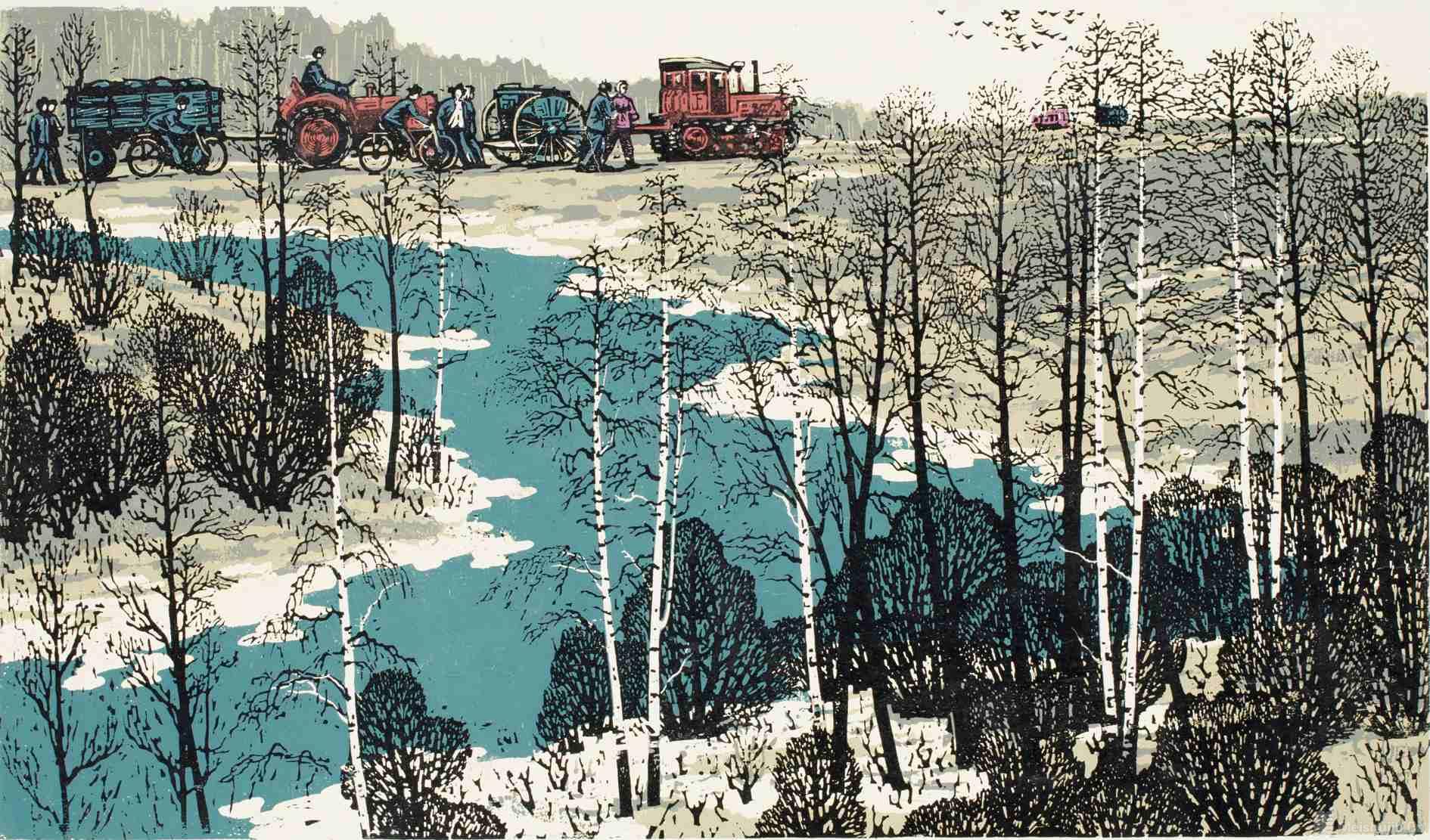 黑龙江版画上承北大荒余韵,下启当代版画精神。60年光阴逝去,当年“挺进北大荒”“工业学大庆”的万丈豪情似乎已经渐去渐远,然而“扎根黑土地,从生活中汲取创作养分,紧扣社会发展时代脉搏,立足当下,反映生活”的黑龙江版画精神并没有出现断层,正沿着前辈指引的前进方向,在深入生活、反映生活、以鲜明的地域特征表现生活的道路上踏步前进。